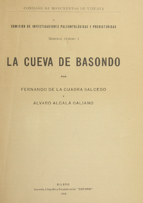acta0 ← Anterior Siguiente → Portada del monográfico de la Comisión dedicado al descubrimiento de las cuevas de Basondo
